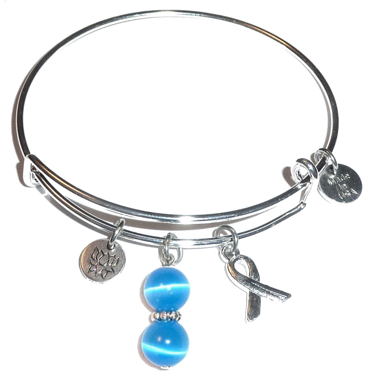 (Blue - Colon Cancer ) Hope for the Cure Bangle Bracelet -Expandable Wire Bracelet– Comes in a gift box