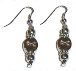 Product Description\n\nMade with 5mm silver plated Bali Daisy Spacer beads and a cancer awareness ribbon bead. They are made with surgical steel french wires. They are assembled by hand here in the USA!\n\nThese earrings are 1 3/4 inches long, this will fit most adults and is a good universal size.\n\nThe bracelets come mounted on a card, prepackaged with the meaning of all the cancer colors printed on the back of the card. A great way to get earrings for any cancer awareness event, to resell for a good cause or just to wear your self to show support for cancer awareness.\n\nColors used in this bracelet and their meanings: You will receive the following colors: Forest Green (Renal/Kidney), Dark Brown (Colo-rectal & Anti-Tobacco), Purple (Pancreatic), Orange (Leukemia), White Pearl(Lung), Royal Blue (Thyroid & Prostate), Mint (Liver, Lymphoma & transplant), Lavender (All cancer survivors and general cancer awareness), Yellow (Bladder & Sarcoma), Black (Melanoma), White (Cervical, Bone & Retinoblastoma), Gray (Brain), Pink (Breast), Teal (Ovarian), Peach(Uterine), Red/Burgundy (Aids/Myeloma), Golden (Childhood Cancer) & Periwinkle (Stomach).