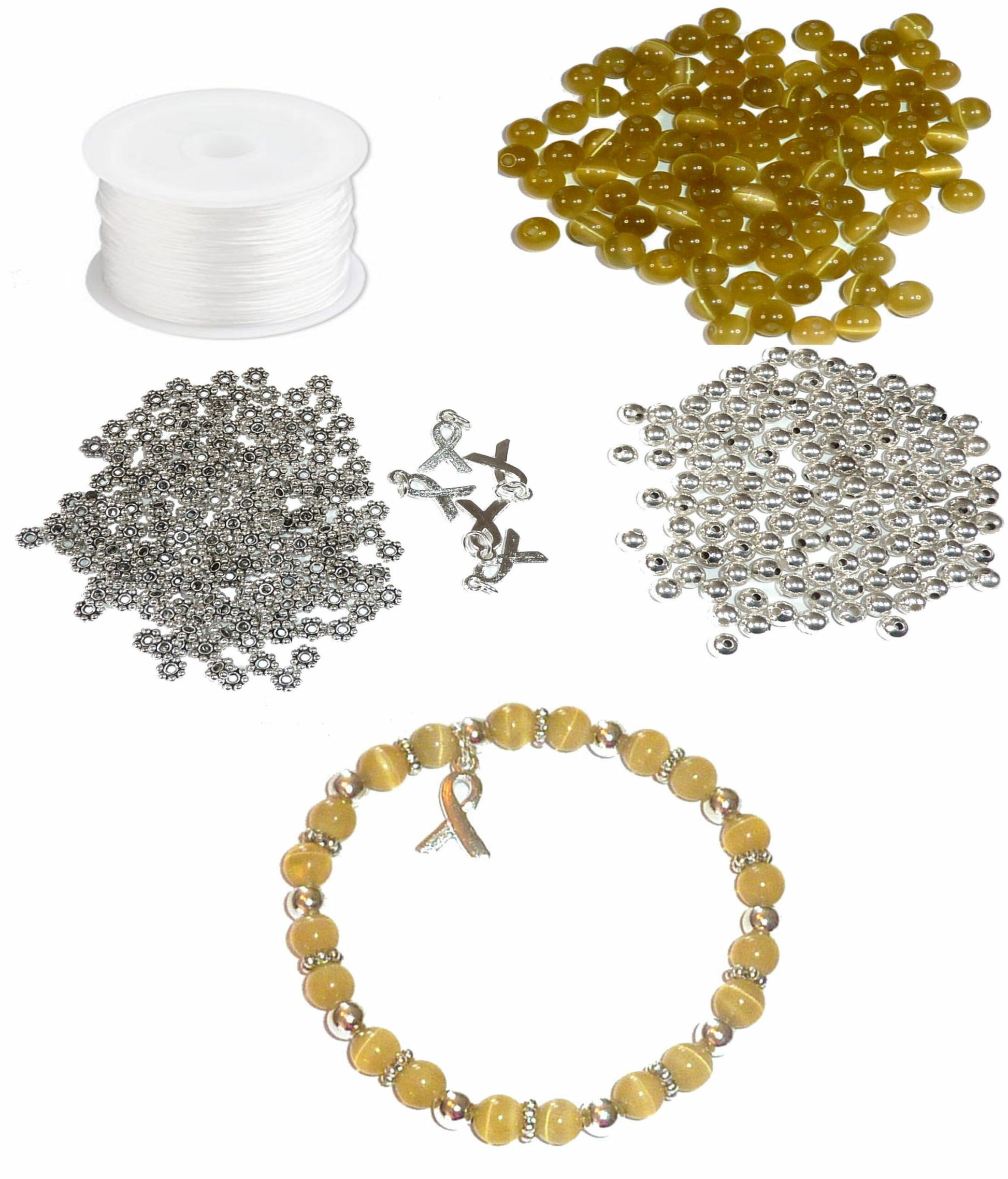 DIY Kit, Everything You Need to Make Cancer Awareness Bracelets, Uses Stretch Cord, Great for Fundraising Makes 5 - Golden (Childhood Cancers)