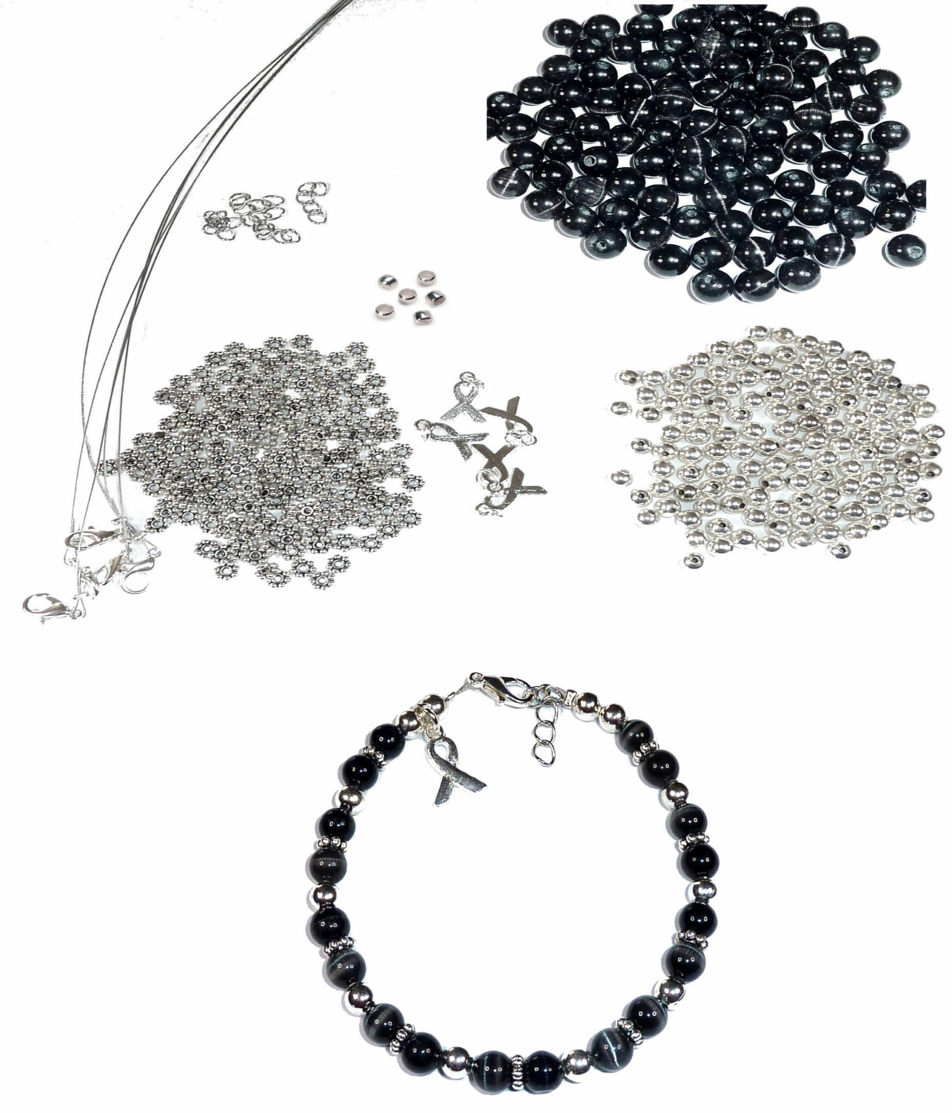 DIY Kit, Everything You Need to Make Cancer Awareness Bracelets, Uses Wire, Crimps and Clasps, Makes 5 - Black (Melanoma)