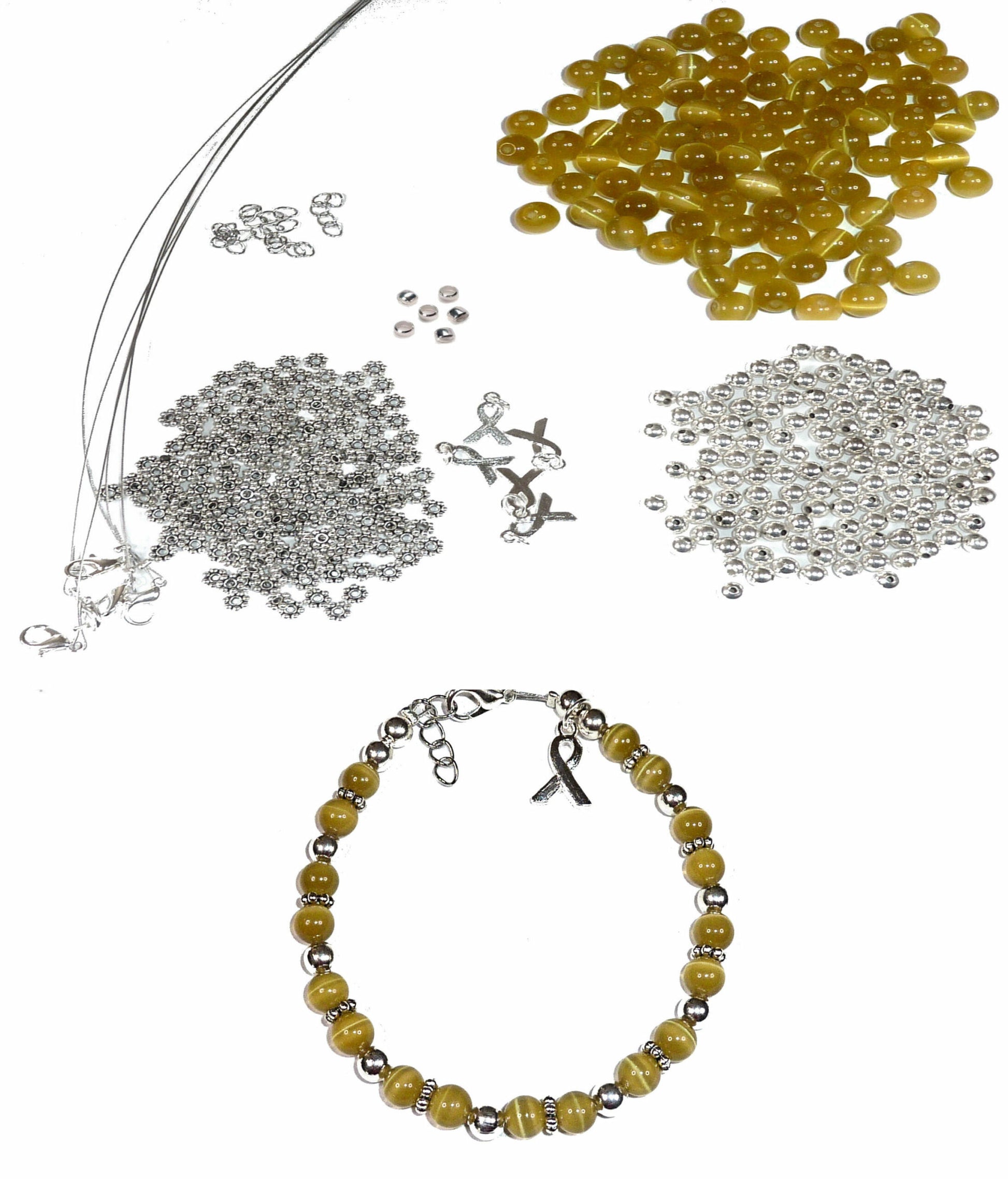 DIY Kit, Everything You Need to Make Cancer Awareness Bracelets, Uses Wire, Crimps and Clasps, Makes 5 - Golden (Childhood Cancer)