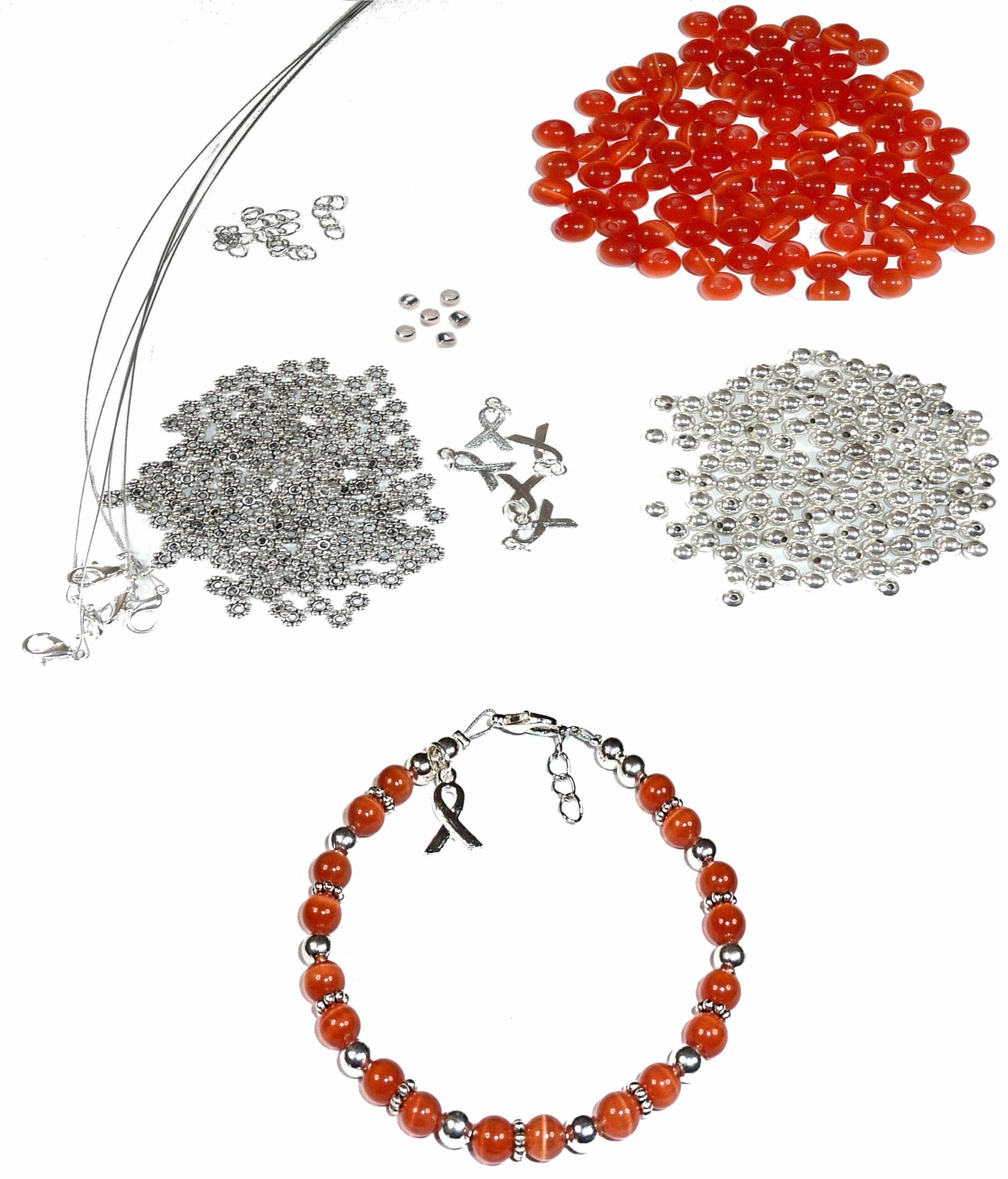 DIY Kit, Everything You Need to Make Cancer Awareness Bracelets, Uses Wire, Crimps and Clasps, Makes 5 - Orange (Leukemia)