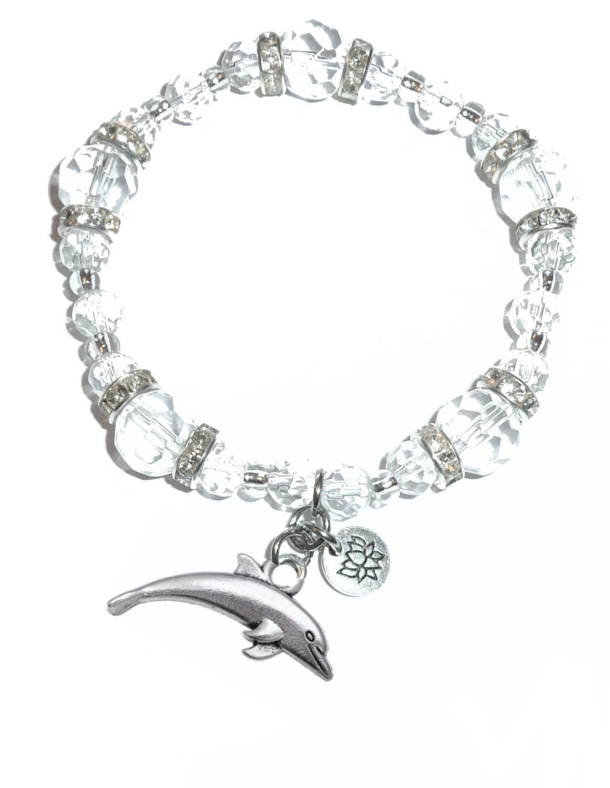 Stretchy bracelet, handmade with strong stretch cord. Fits any size wrist. Crystal beads and silver plated accents ensure that this charming bracelet will last with everyday wear.