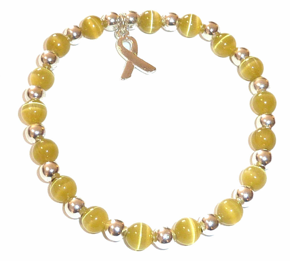 Golden (Childhood Cancers) Packaged Cancer Awareness Bracelet 6mm - Stretch (will stretch to fit most Adults)