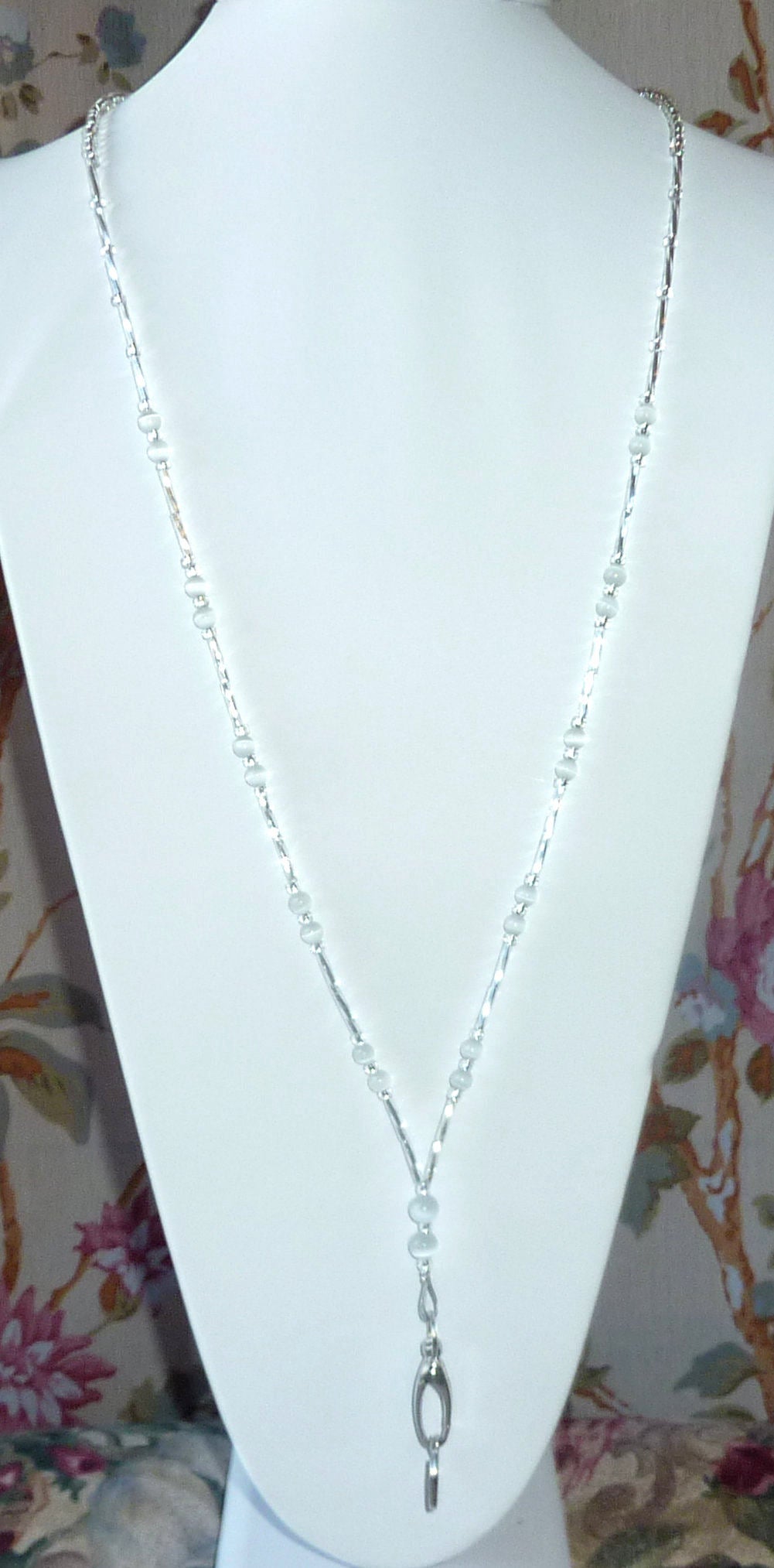 White Beaded Lanyard For Women Breakaway - Simple White (Ultra Slim & Light) Fashion Lanyard with break away magnetic clasp